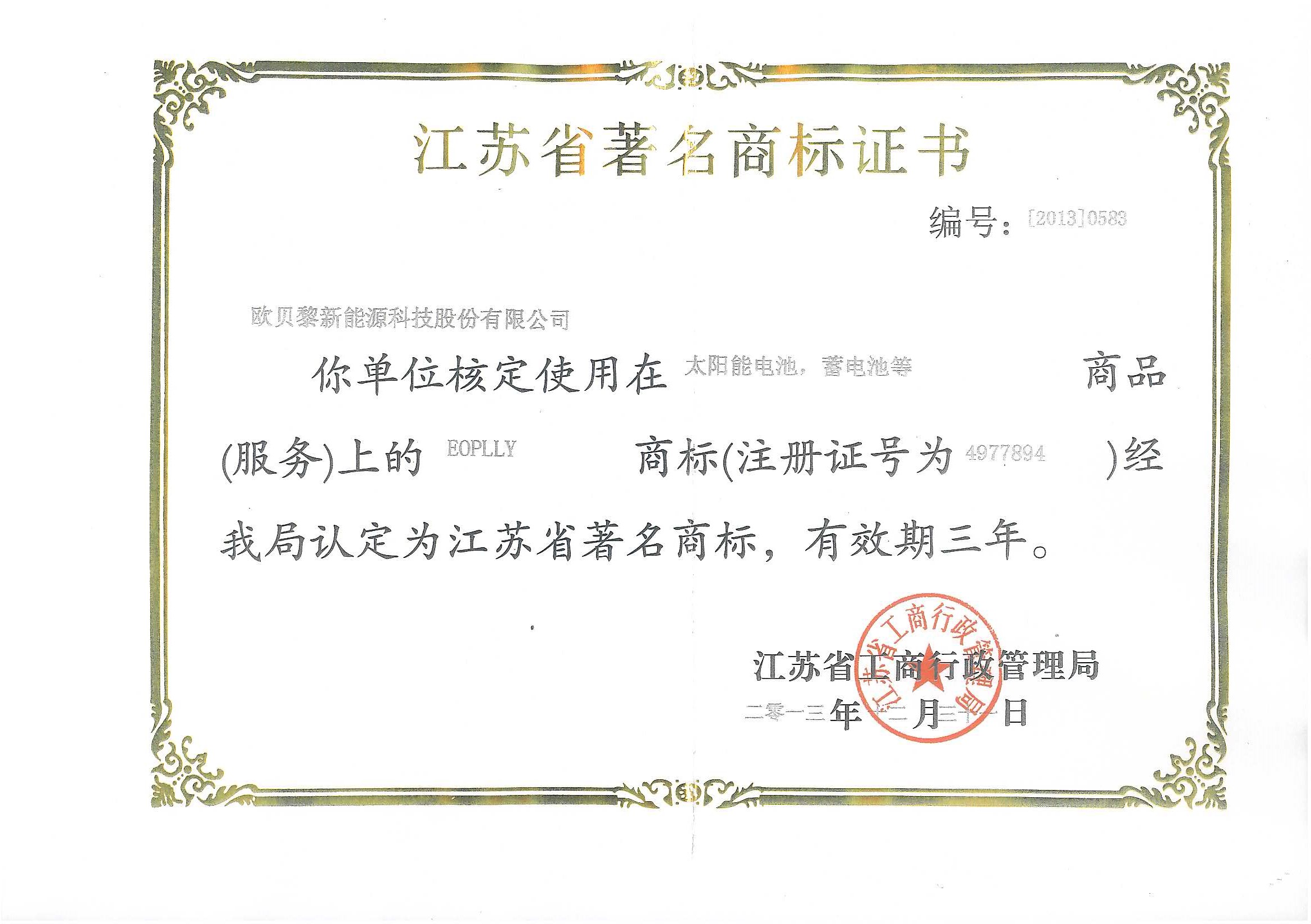 江蘇省著名商標